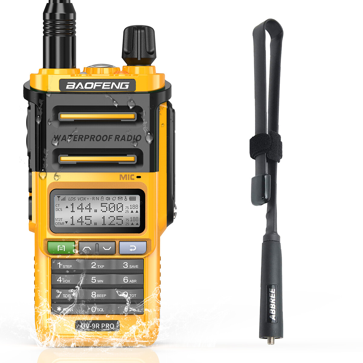 . The BAOFENG UV-9R Pro 8W Ham Radio is a long-range, dual-band, waterproof handheld transceiver ideal for outdoor activities like camping and hunting Cross band reception/transmission A variety of display channel number, frequency, channel frequency, channel name, etc
