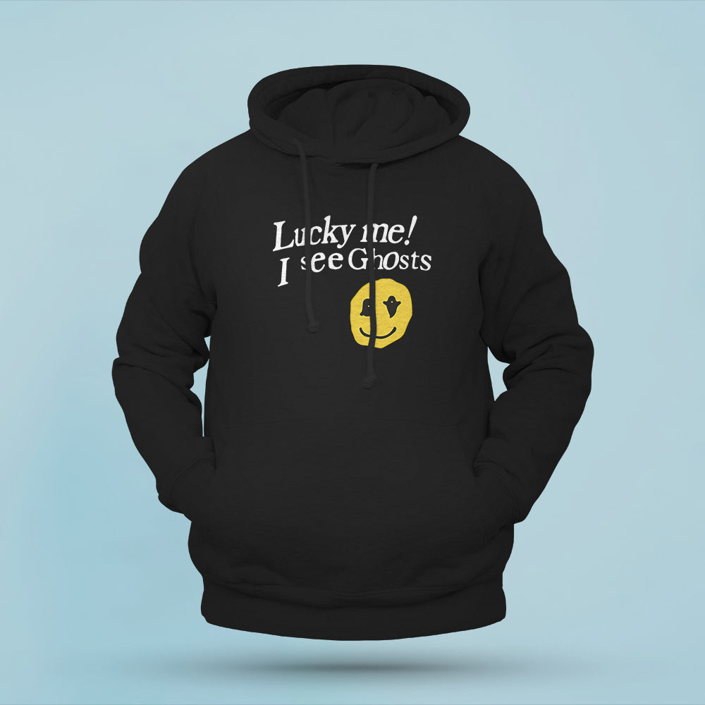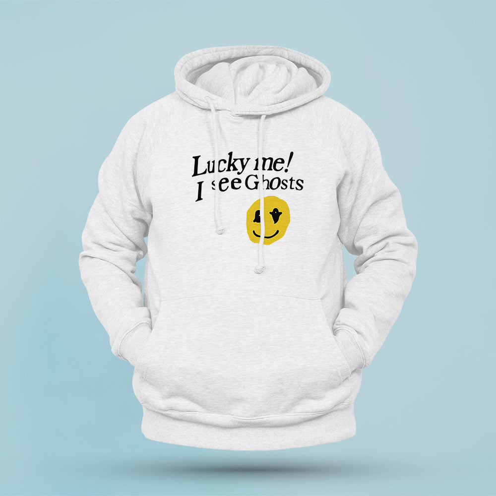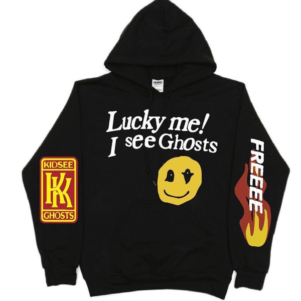 I See Ghosts Hoodie. The "Kanye West Lucky Me I See Ghosts Hoodie" features a relaxed and modern fit, allowing for unrestricted movement and a flattering silhouette Kanye West Latest Lucky Me I See Ghosts is available now at Kanye Shop